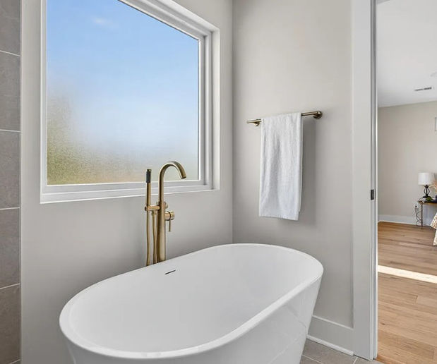 A private retreat featuring abundant natural light, exceptional sound insulation, and a spa-inspired ensuite bath with a zero-entry shower, free-standing soaking tub, floating vanity, and clean, modern finishes.